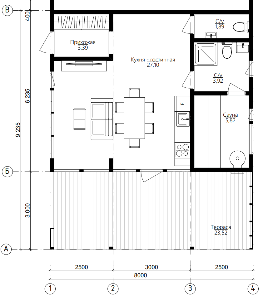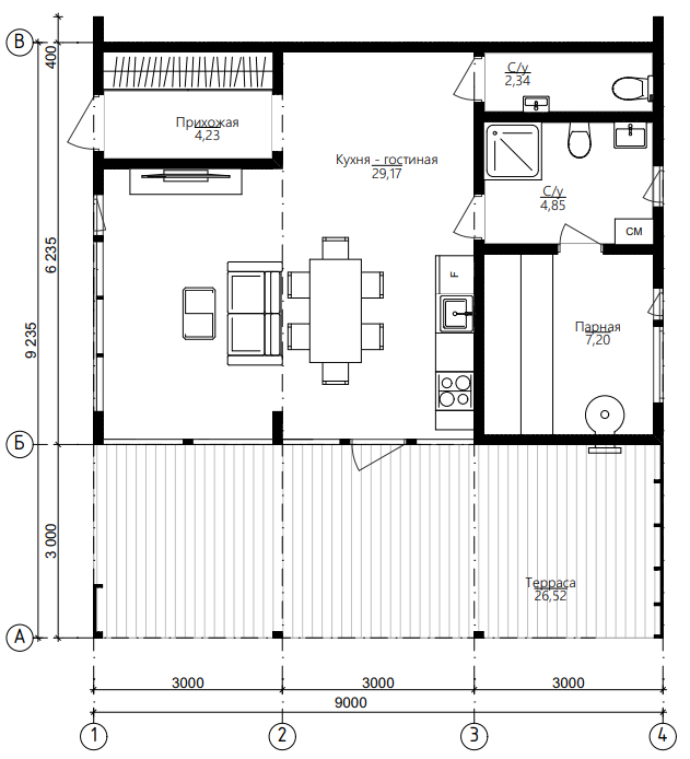 Парная, кухня-гостиная, 2 санузла, прихожая, терраса