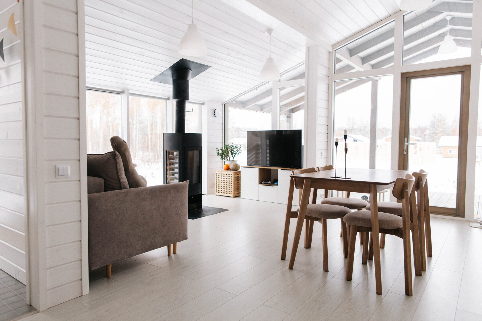 • Деревянные входные двери и поворотно-откидные окна с двухкамерными стеклопакетами, фурнитура Roto.