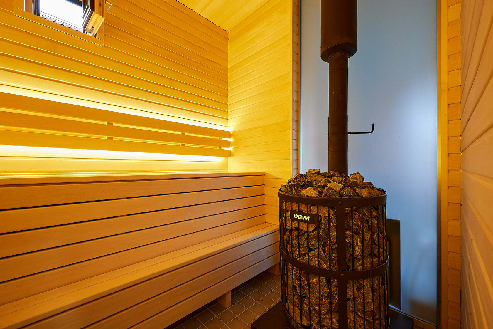 • Отделка стен в парной - вагонка из липы сорта ЭКСТРА