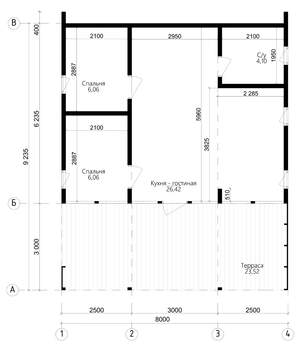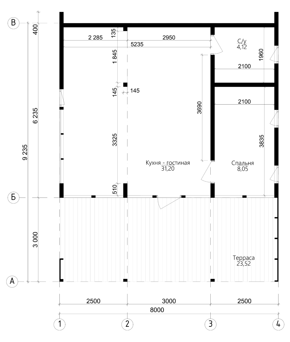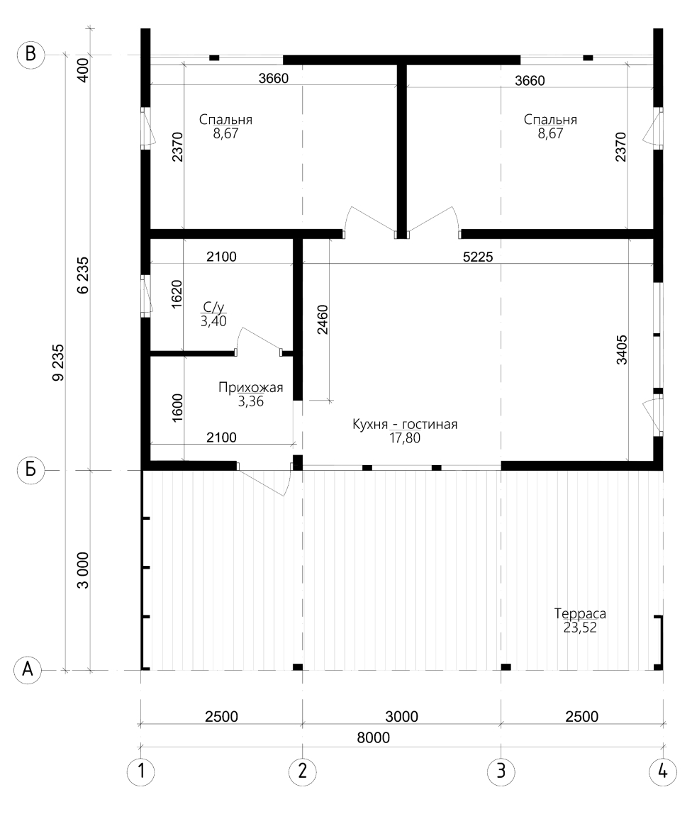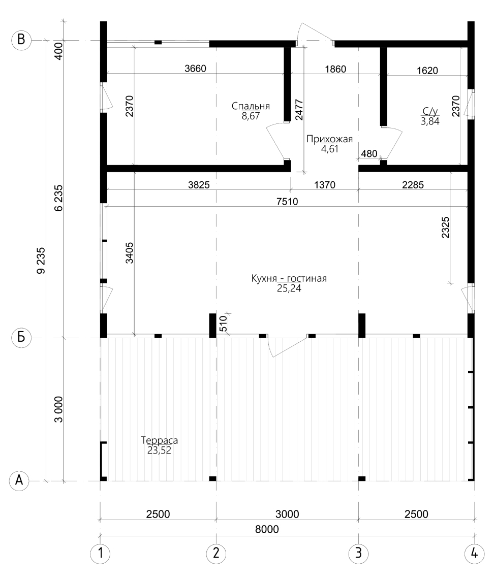 одна спальня с прихожей и дом можно достроить индивидуально под вас