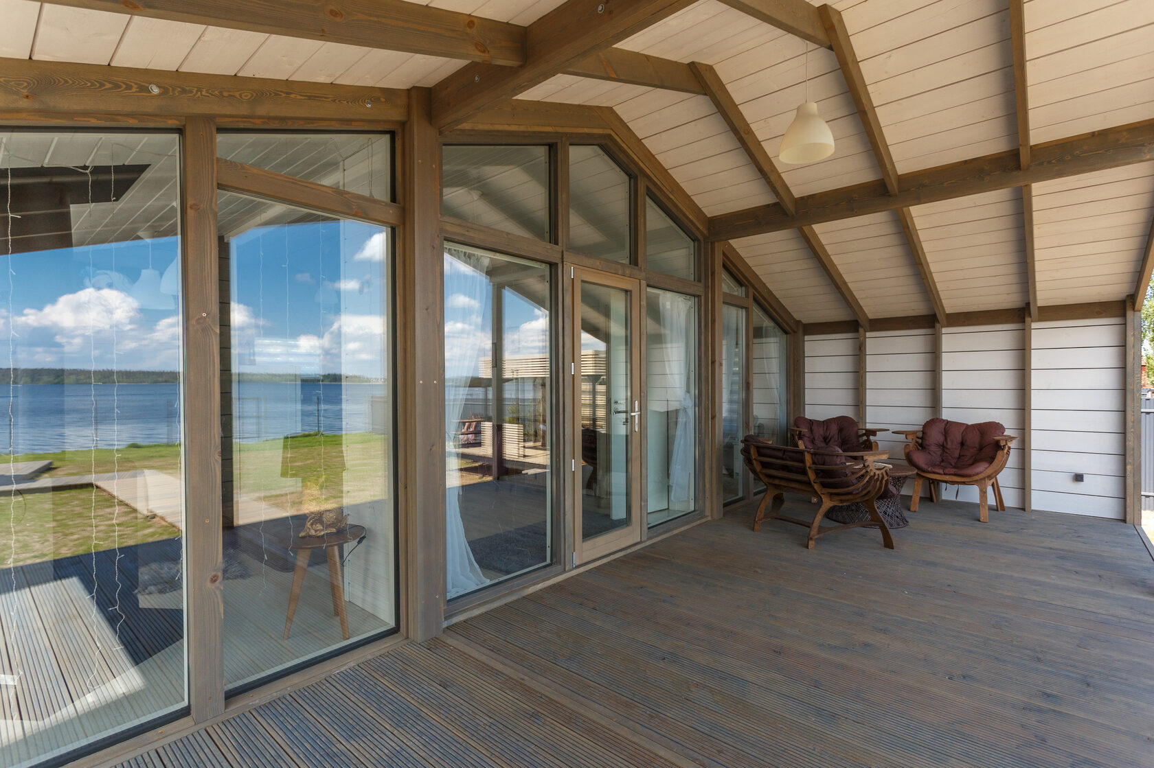 • Деревянные двери и окна с двухкамерными стеклопакетами, поворотно-откидные