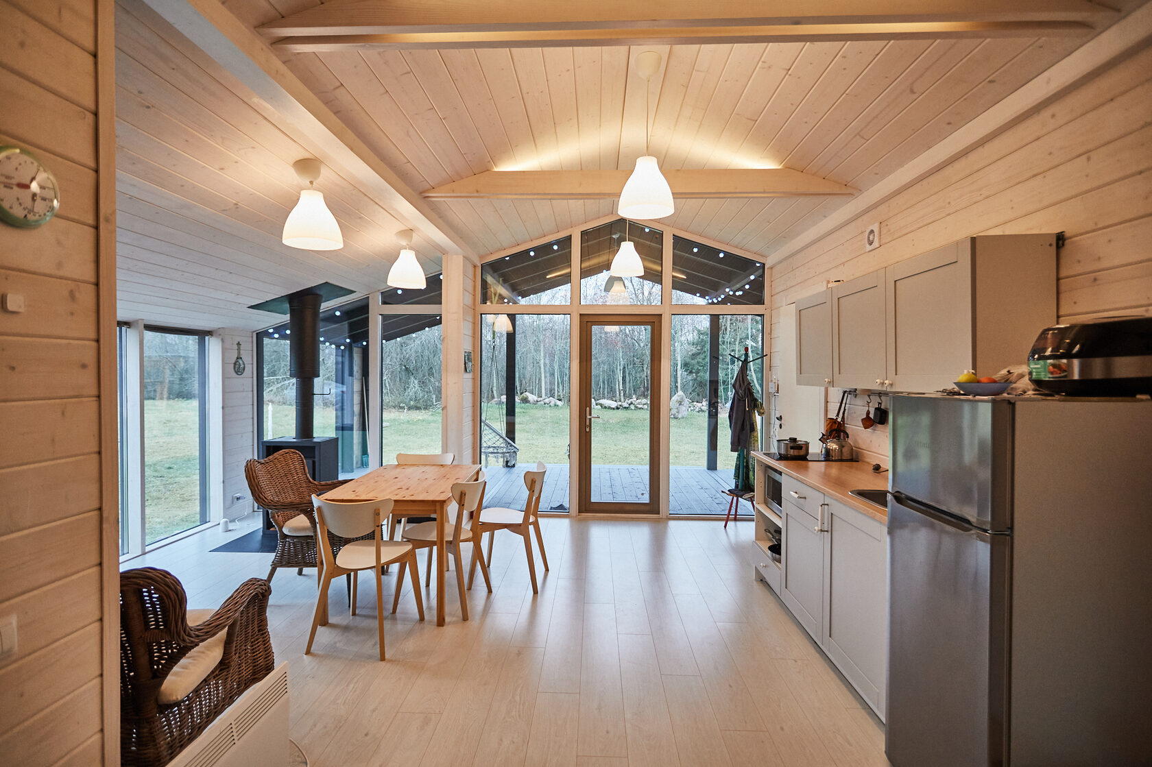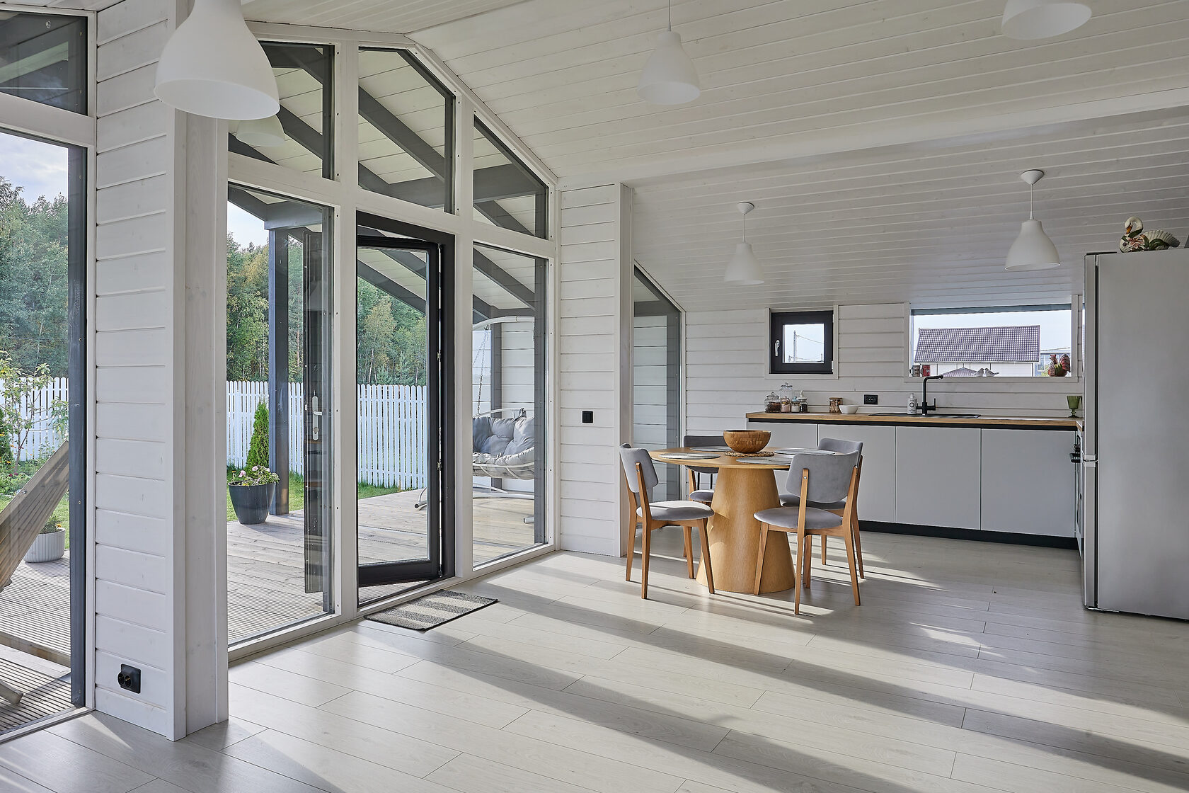 • Деревянные двери и окна с двухкамерными стеклопакетами, поворотно-откидные