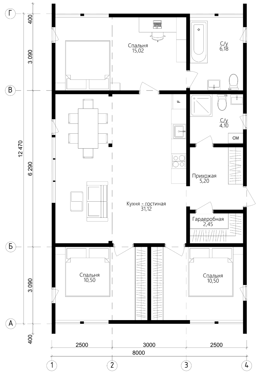 Модульный дом 77 2с+1с